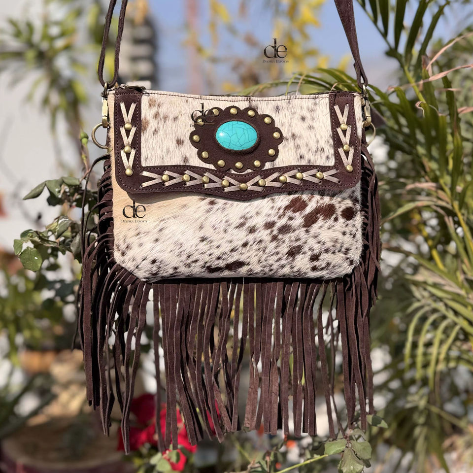 Sac à main à franges en cuir de vachette véritable Sac à bandoulière en pierre turquoise Multi utilisations Sacs élégants Sac à franges Offre Spéciale à pompon bohème