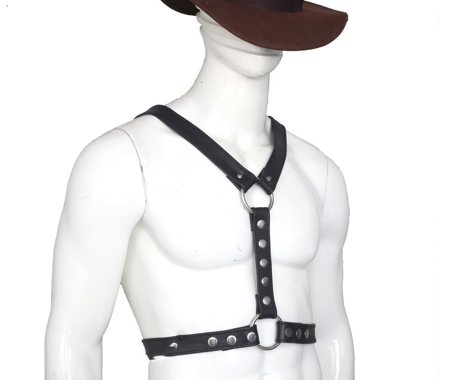 Real Cowhide Leather Men's Y Shape Chest & Shoulder Harness Double Folded Fetish Bondage Gear Customizable Color Logo MHS-0048