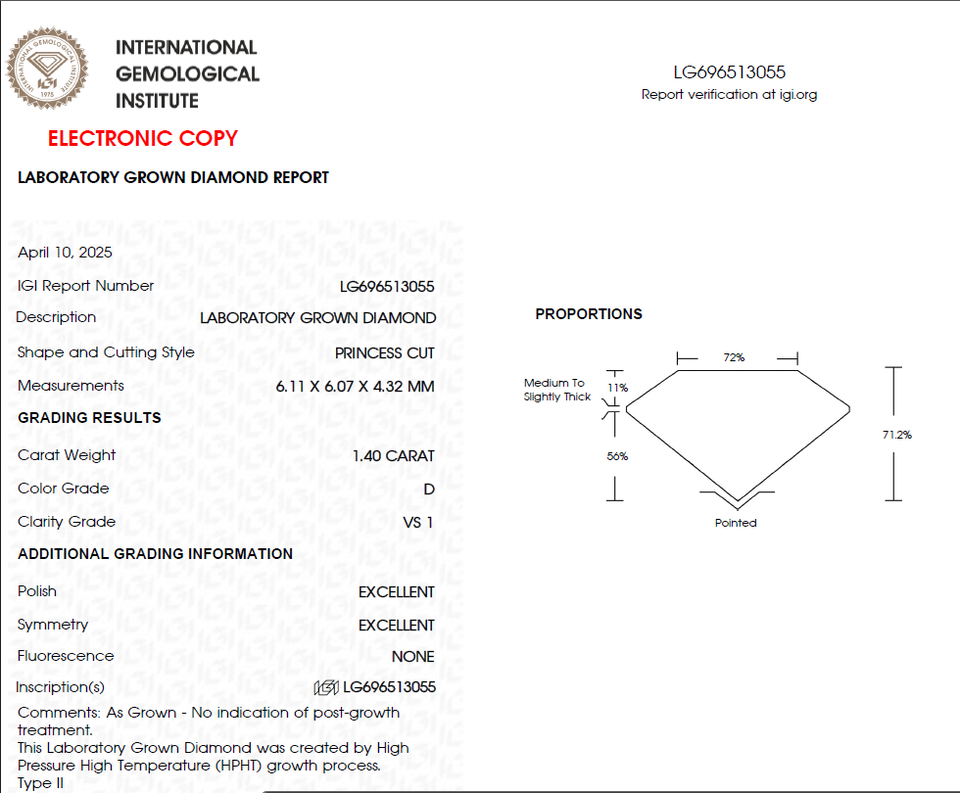 Product Name:PRINCESS CUT LAB GROWN DIAMOND
