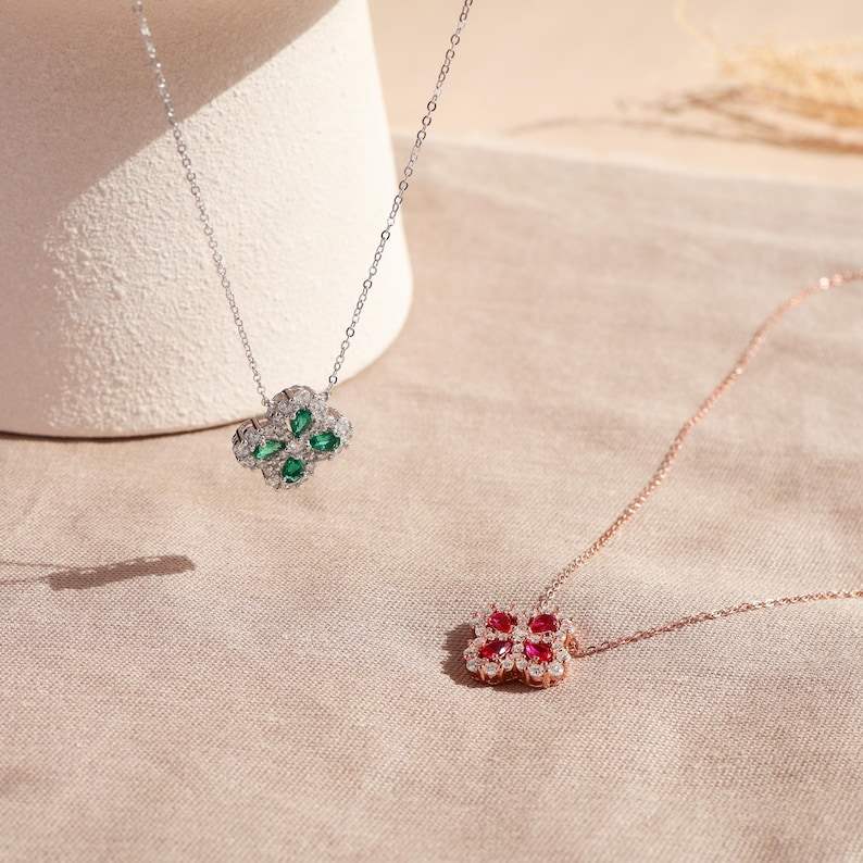 Collier en argent avec émeraude véritable, pendentif trèfle en émeraude de laboratoire authentique, bijoux, cadeaux d'anniversaire pour elle