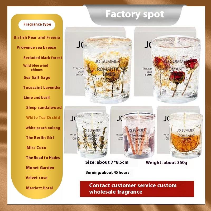 Bougie parfumée en cire de soja avec fleurs naturelles, huiles essentielles et cristaux, pour aromathérapie, ornement de chambre à coucher