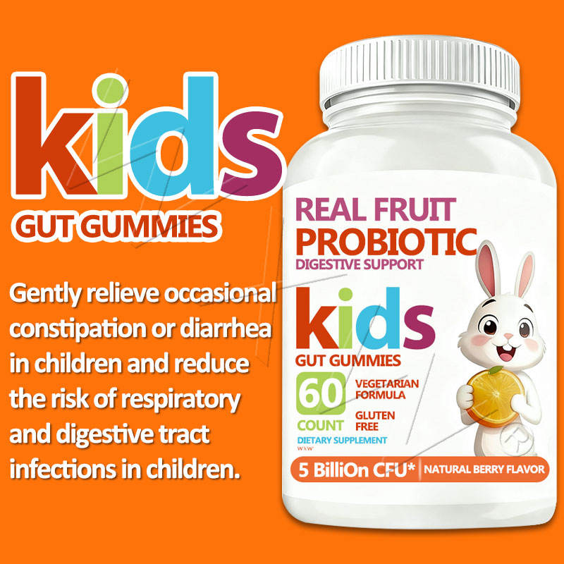 Gummies Probiotiques aux Fruits Naturels pour le Soutien Digestif des Enfants, Formule Végétarienne Prébiotique, Saveur Baies Naturelles