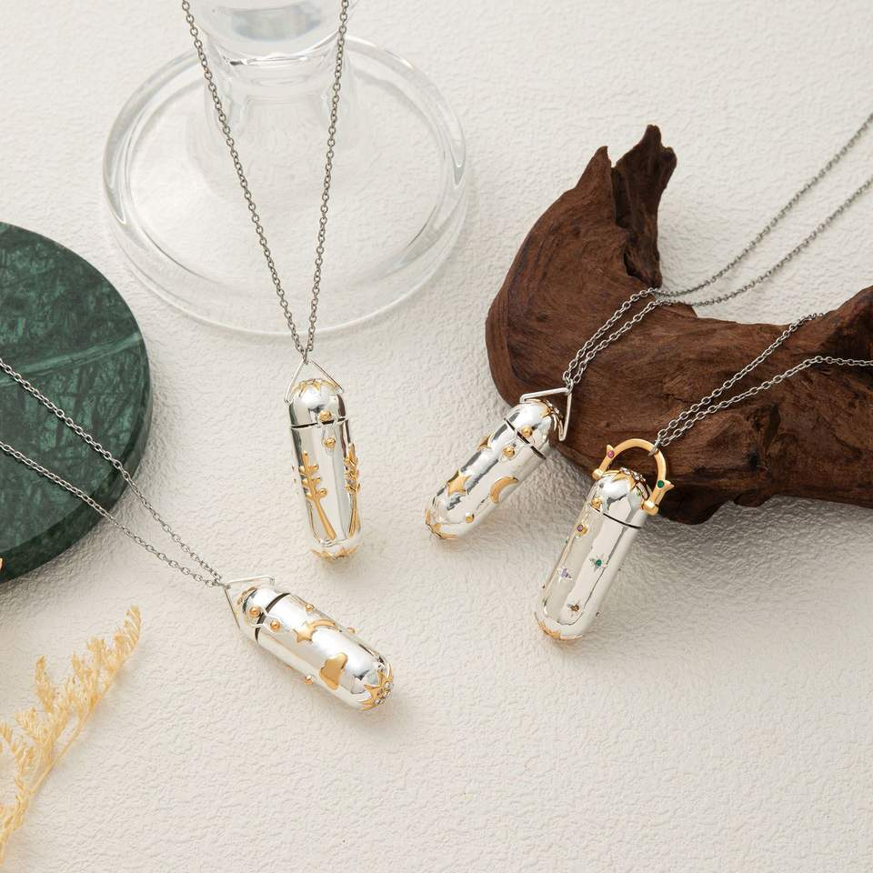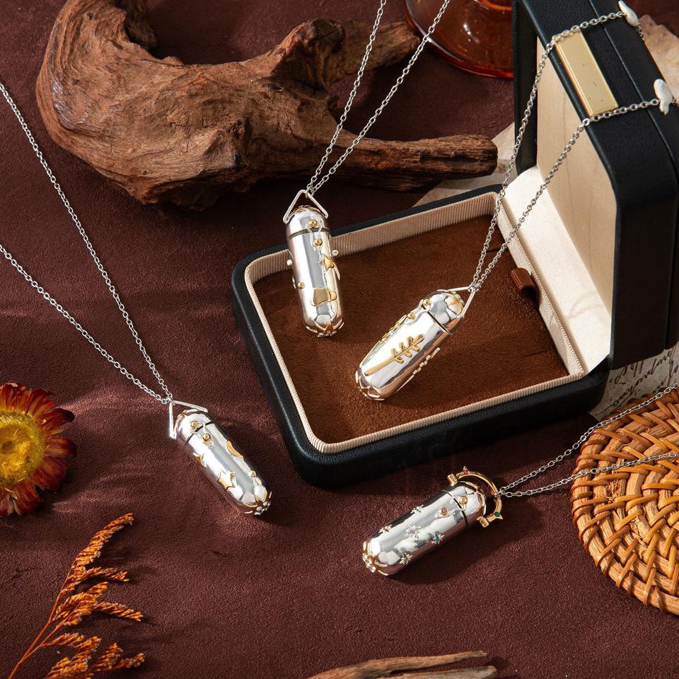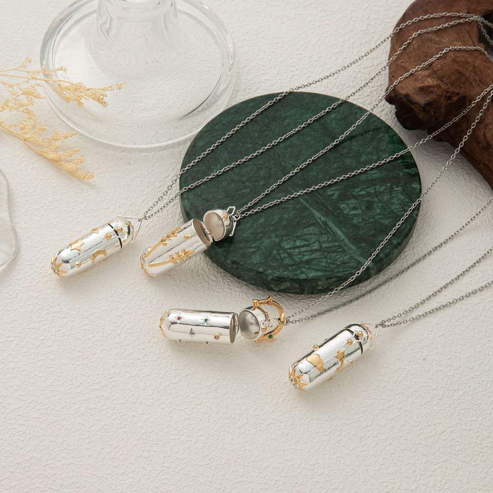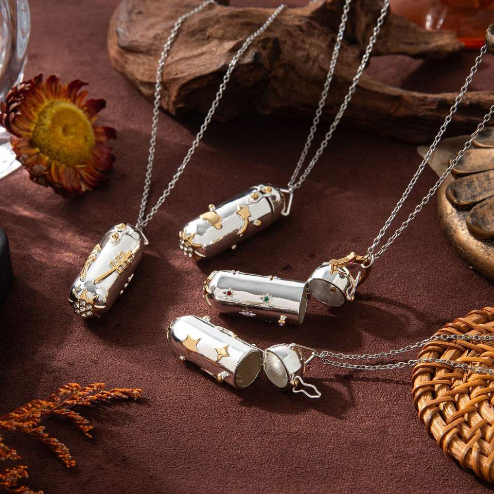 Collier médaillon vintage plaqué or véritable avec zircon coloré, motif nuage, étoile, lune, fleur, bijou souvenir
