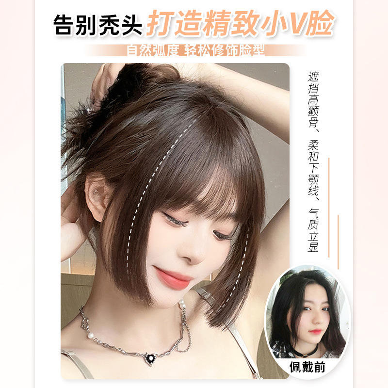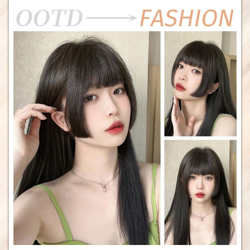 Perruque en cheveux naturels pour femme, coupe princesse avec frange droite, raie au milieu, invisible, pour une frange naturelle sur le front, qui améliore la forme et le volume du visage