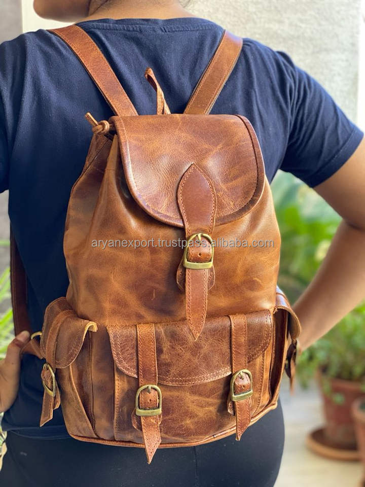 Sacs à dos en cuir véritable faits à la main, style vintage, nouveau design, multi-usages, sacs à dos à poches, vente en gros, produit en vrac