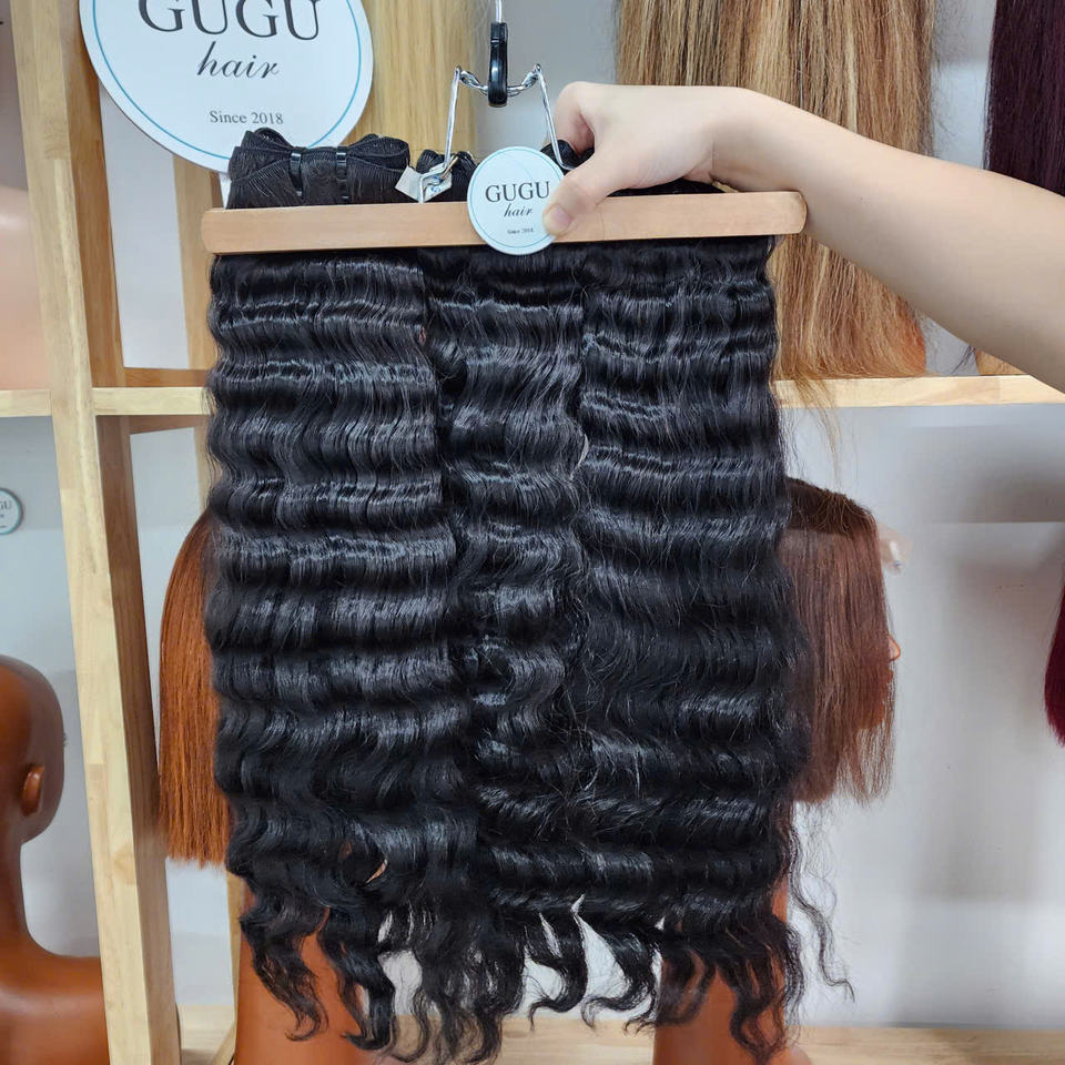 Vrais Extensions de Cheveux Humains Vietnamiens Vague Naturelle Paquets de Cheveux Vague Profonde