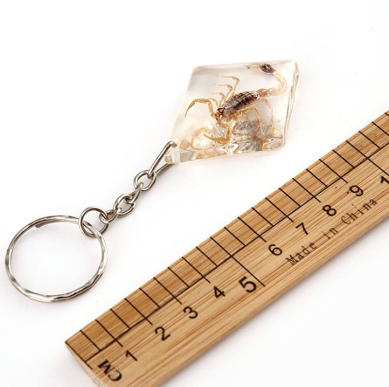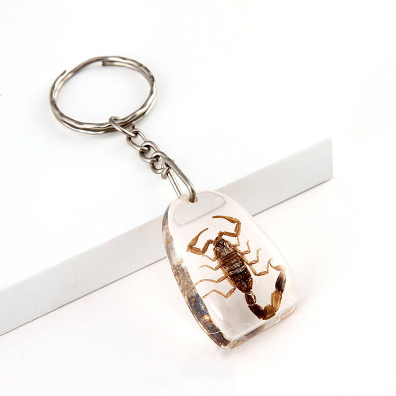 Porte-clés en ambre avec spécimen d'insecte véritable, scorpion, araignée cornée, scarabée, en résine, cadeau souvenir