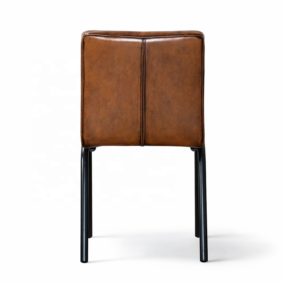 Chaise de salle à manger en cuir véritable avec structure en métal | Sièges pour restaurant bistro industriel | Revêtement côtelé vintage pour hôtels et villas
