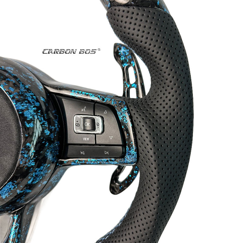 Volant en fibre de carbone forgée bleu clair véritable pour VW MK7 Golf 7 Mk7.5 MK8 Golf 5.5 Mise à jour GTI Polo 7 GTS R Livraison directe