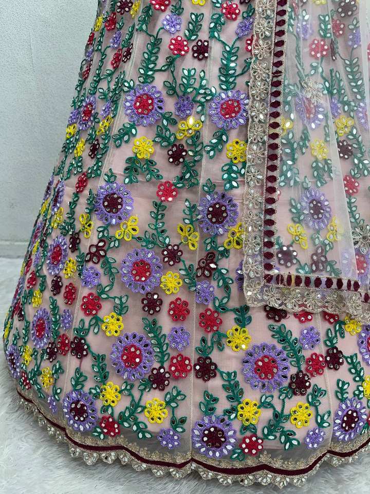 Véritable Miroir Travail Lourd Doux Filet De Mariée Lehengas Choli avec Dupatta pour Mariage Indien & Pakistanais Porter LOURD BRODÉ