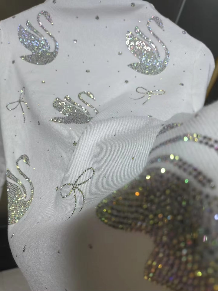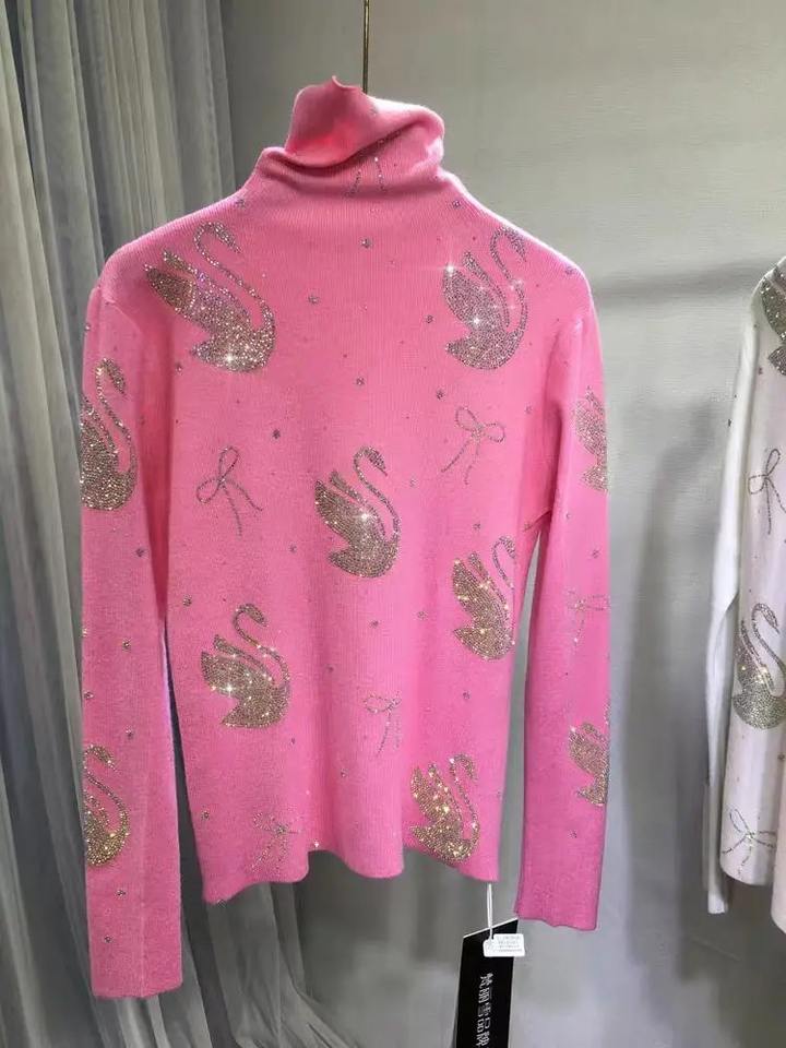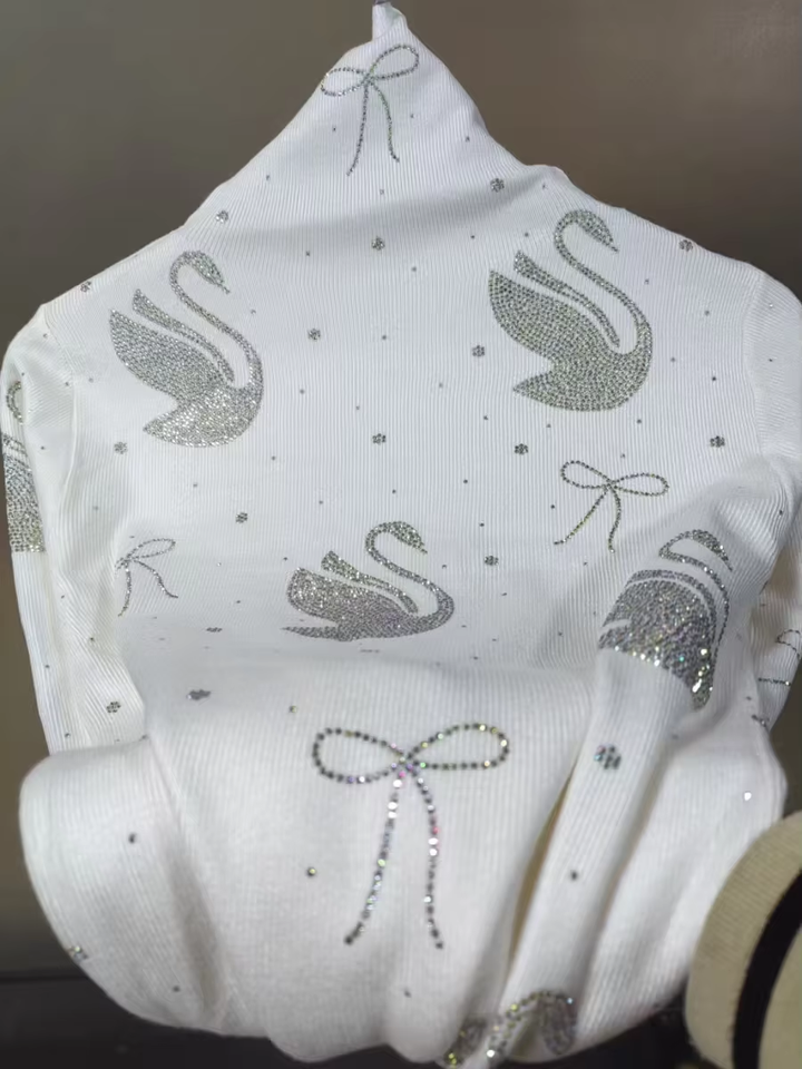 Réel Photo nouvelle tendance automne hiver étincelle pierres col roulé Slim Fit blanc pull femmes tricots pull Pull Pull Femme