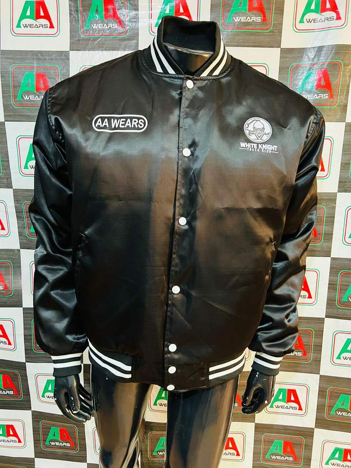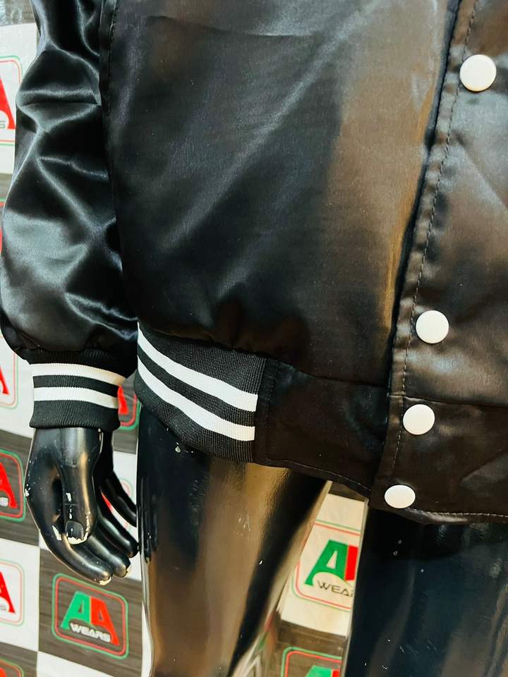 Photo réelle veste de produits réels matériel OEM nouveau design veste de bombardier supérieure veste universitaire noir de jais brillant avec broderie personnalisée