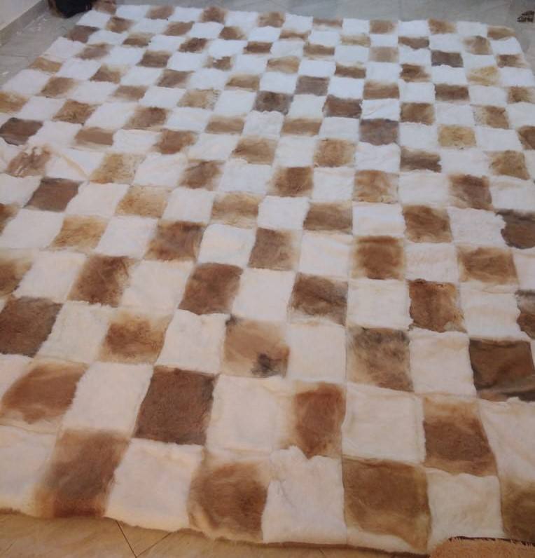 Tapis en fourrure de lapin véritable, moquette de sol en fausse fourrure, fait à la main, pour chambre d'enfants, décoration d'entrée, d'hôtel