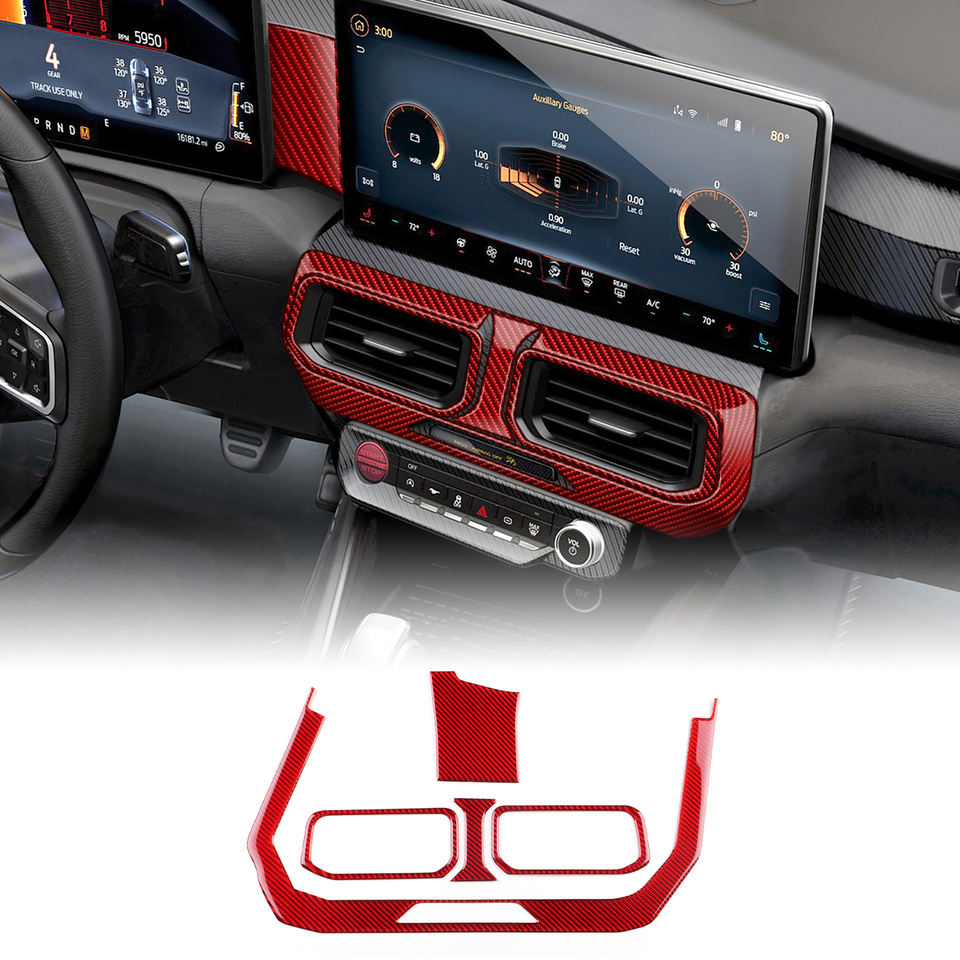 Accessoires de garniture intérieure pour panneau de commande central de climatisation de voiture en fibre de carbone véritable souple, conduite à gauche et à droite, pour Ford Mustang GT 2024-2025