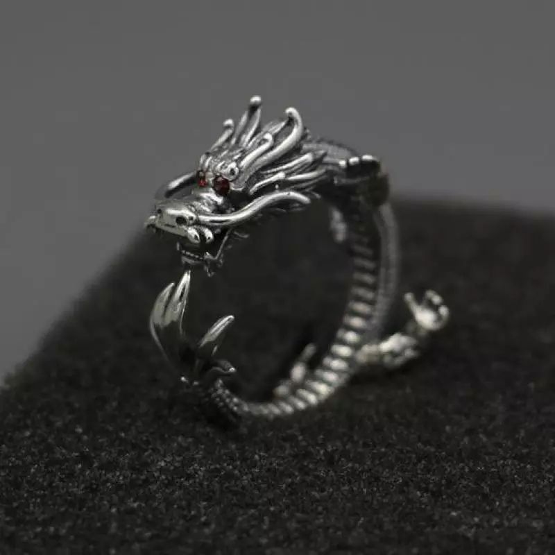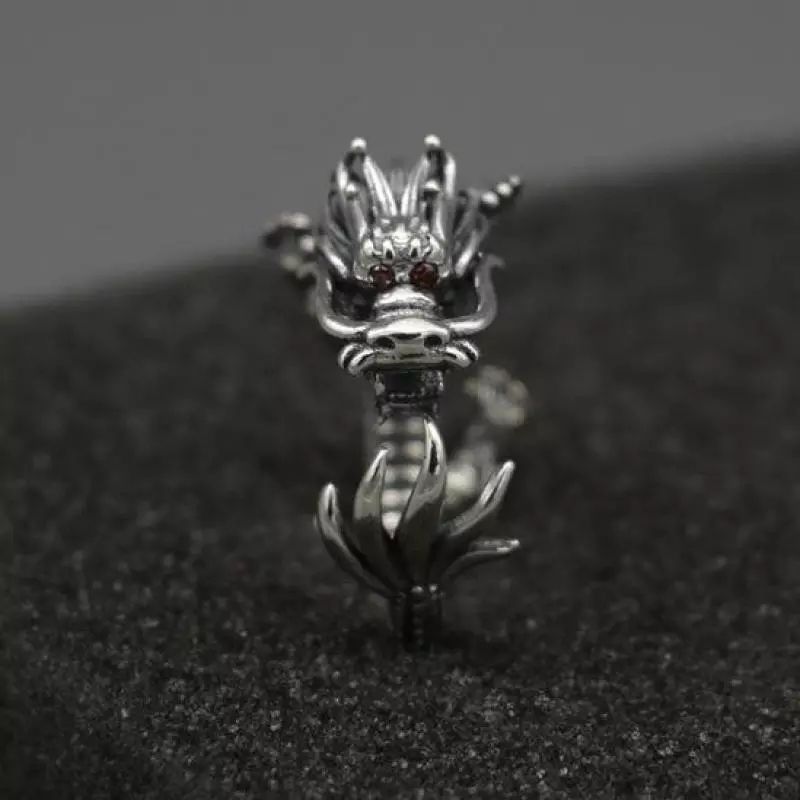 Réel Solide 925 Argent Dragon Anneaux Pour Hommes Vintage Taille Ouverte Réglable Thai Argent Anneaux Hommes Accessoires Bijoux