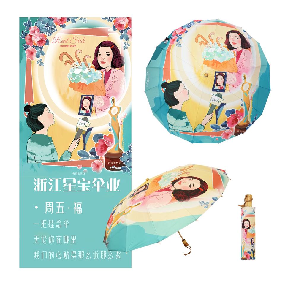 Phoera — parapluie pliant au design original, belles étoiles, cadre doré, 16 plis, pour clients VIP