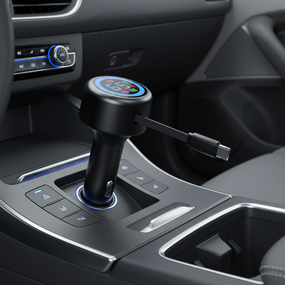 Chargeur de voiture rétractable avec surveillance en temps réel, adaptateur USB portable à charge rapide, chargeur multifonction Type C