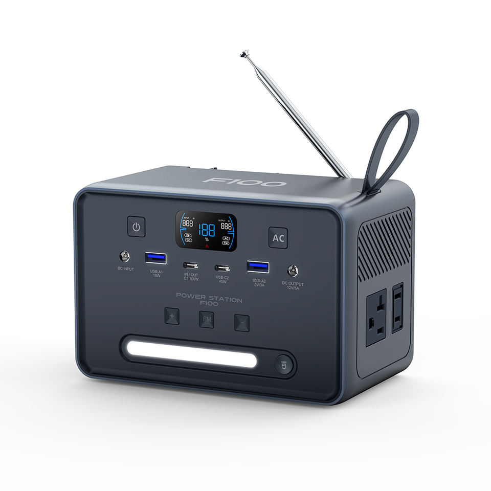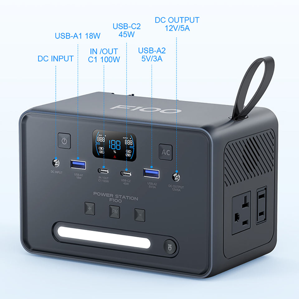 Station d'alimentation portable 100W 89,6Wh avec radio FM pour ordinateur portable et téléphone, surveillance de la puissance en temps réel, idéale pour les voyages