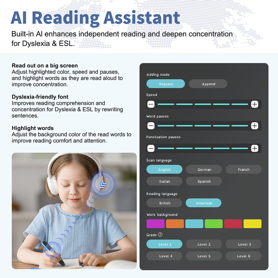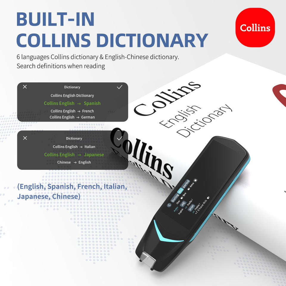 Wi-Fi, Écran tactile, Mise au point automatique, Flash intégré, Scanner traducteur, IA, 112 langues, dictionnaire de numérisation, traduction phonétiqueDispositif
