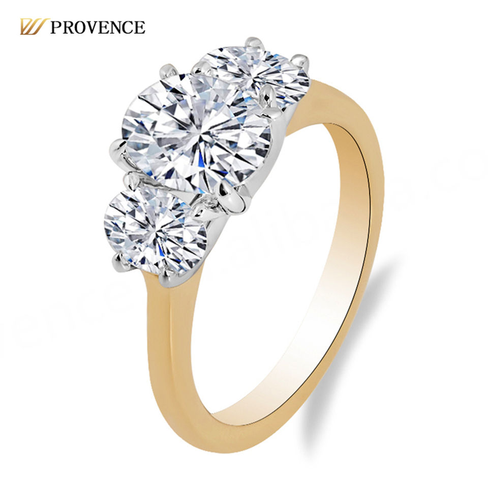 Bague en or jaune véritable avec trois pierres ovales en moissanite, pierre principale de 2,5 carats D VVS, cadeau d'anniversaire de mariage, personnalisable, classique, raffinée