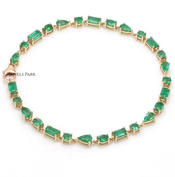 Real emerald tennis bracelet in solid gold | Emerald cut emerald tennis bracelet gold | Natural mix shape emerald link chain