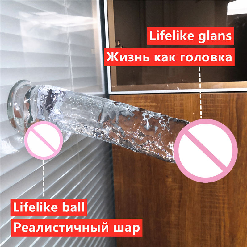 Gode réaliste en cristal coloré pour femme, disponible en 4 tailles