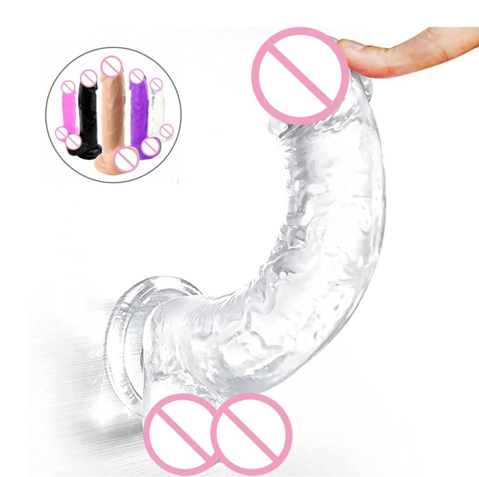 Gode Réaliste Transparent de 22 cm avec Ventouse, Petit Gland Épais et Flexible en Silicone – Jouet Sexuel Pénis