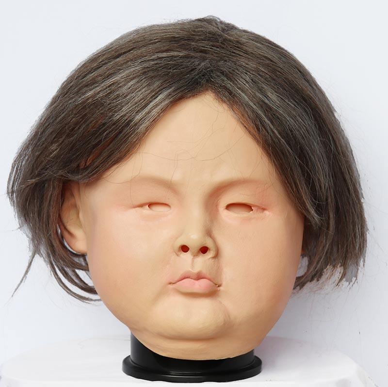 Masque en Latex réaliste pour visage humain avec perruque pleine tête en Silicone drôle bébé fille blague nouveauté Costume masque pour adulte