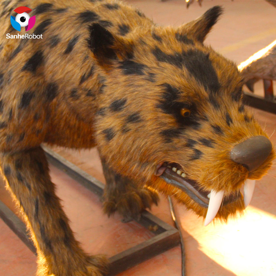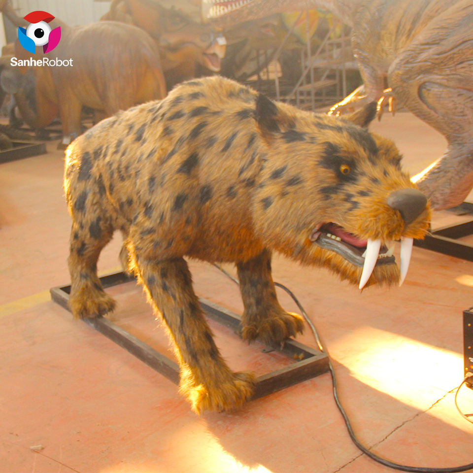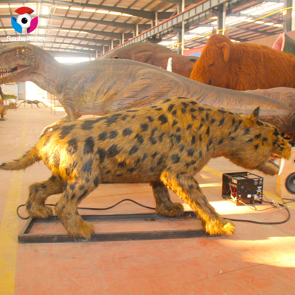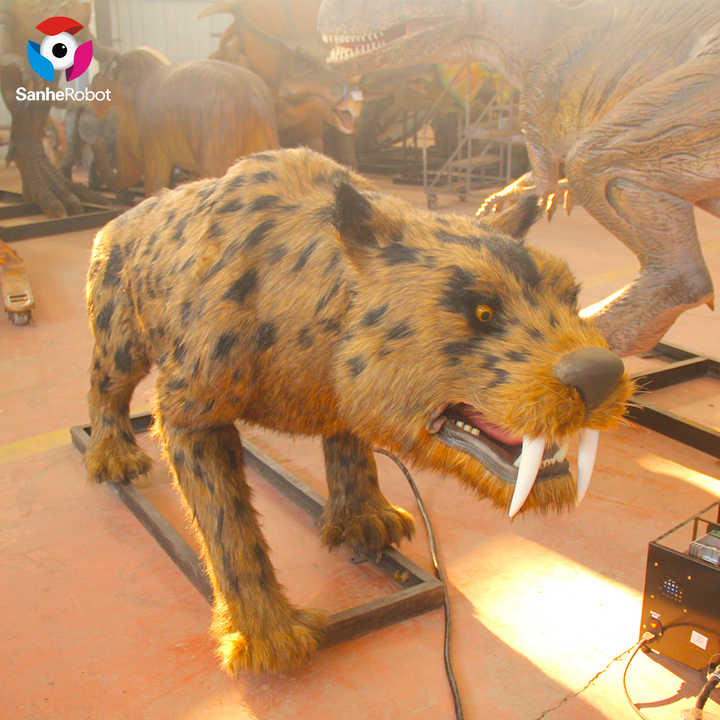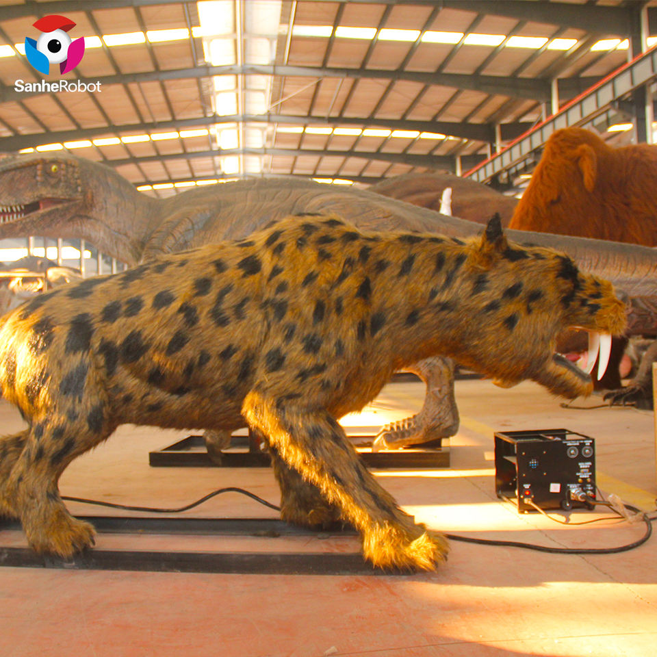 Statue d'animal astronomique en stock, taille de la vie réaliste, tigre à dents de sabres, en âge glacé