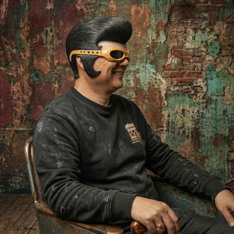 Masque d'horreur réaliste en latex pour homme avec pompadour noir et lunettes – Accessoire de costume pour adulte, Pâques, Halloween, cosplay, motard, fête