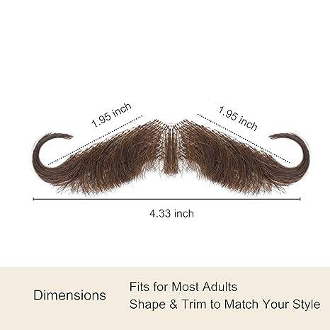 Moustache réaliste faite à la main avec des cheveux humains, moustache de guidon élégante pour homme, poils faciaux de costume avec dentelle invisible