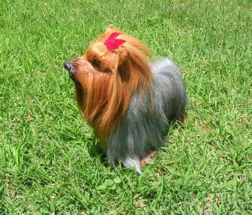 Chien en peluche réaliste, modèle de, jouet yorkshires, avec fourrure de lapin et de chèvre