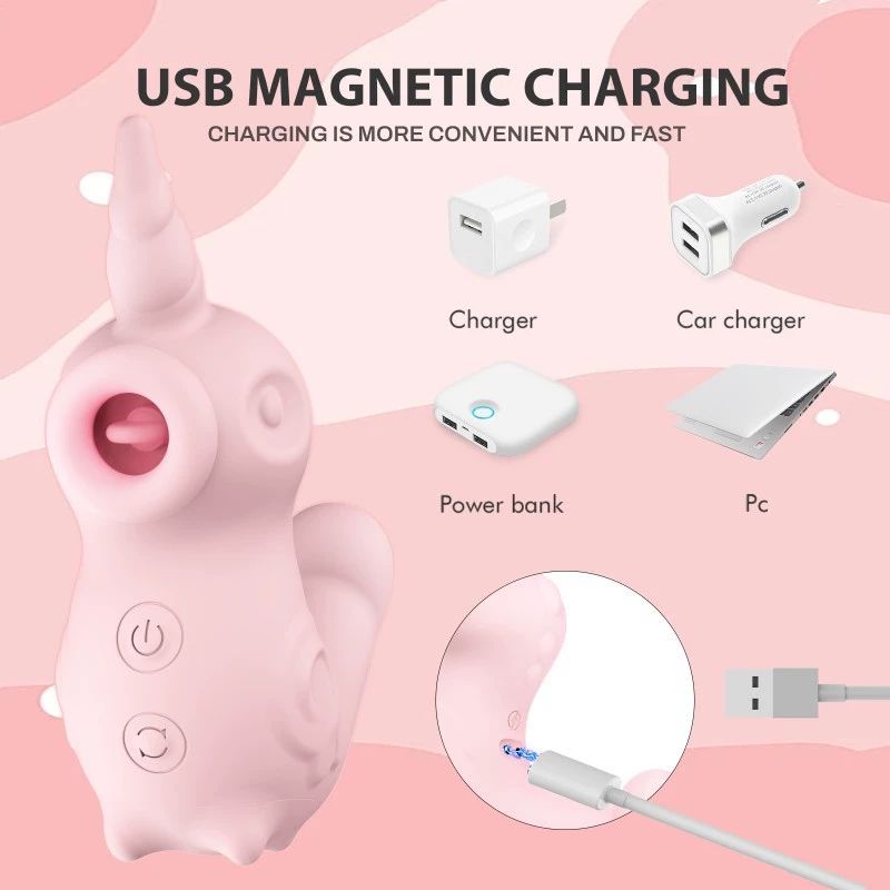 Realistic Rechargeable unicorn Shaped Clitoral Suction and Tongue Licking Vibrator Woman Masturbation Sex Toy
