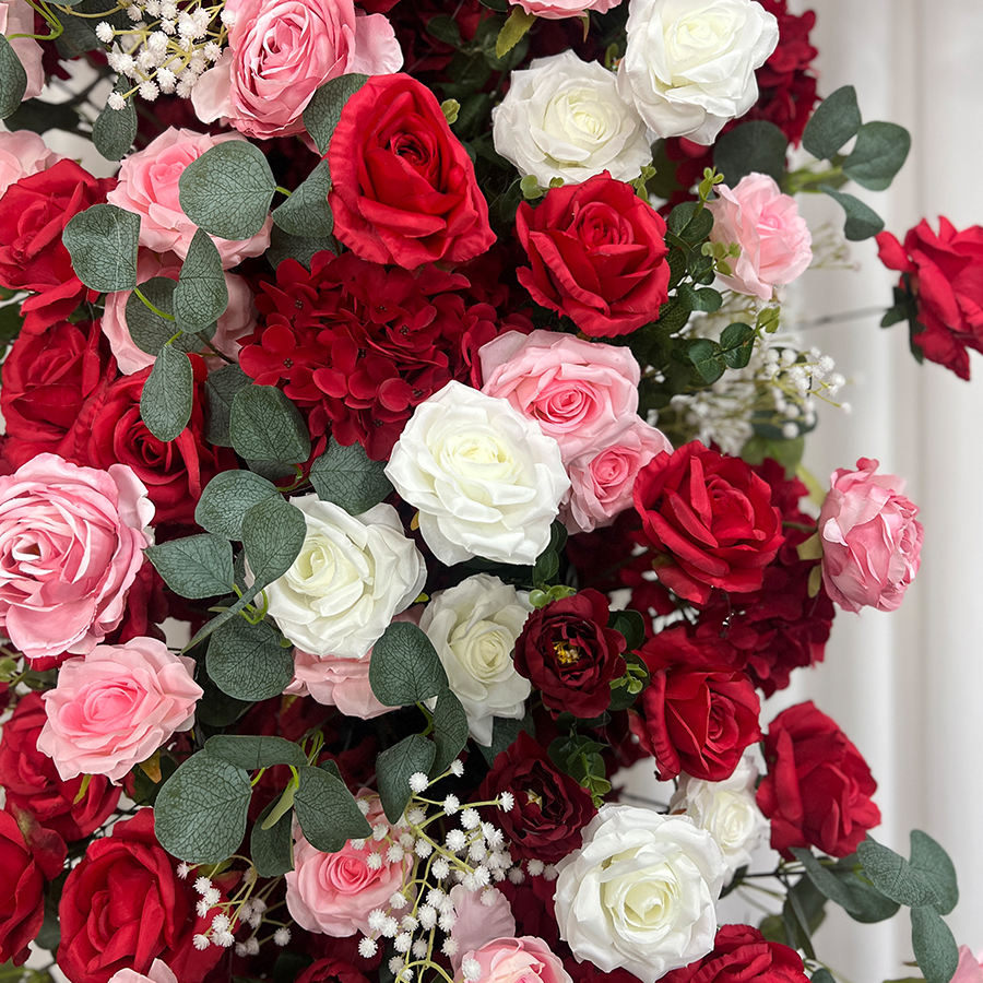 Panneau de décoration d'arche carrée de mariage en soie simulée réaliste rose et rouge pour la rentrée scolaire