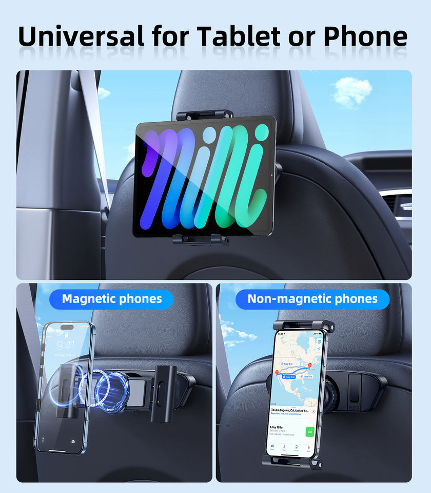 Support de téléphone et de tablette pour casque arrière avec crochet universel pour la plupart des véhicules, rangement intérieur, cintre