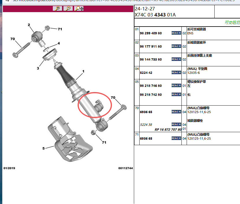 Nom de l'article:Amortisseur arrière