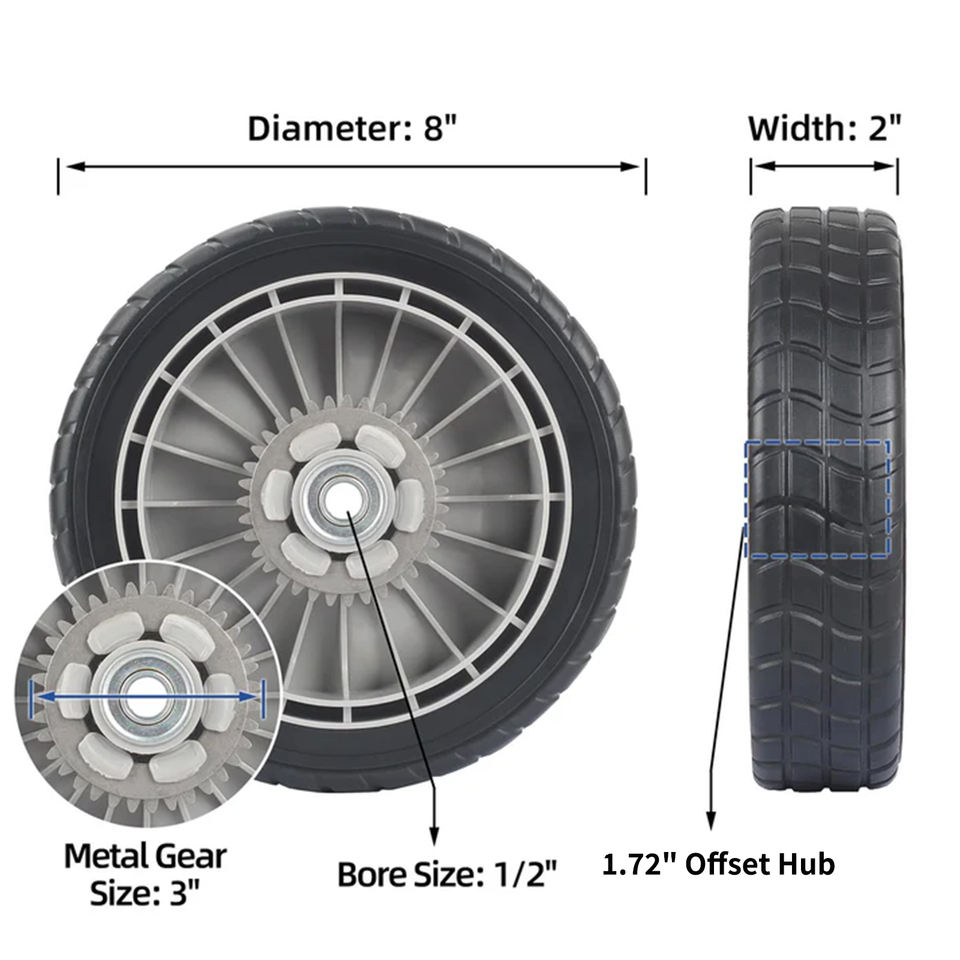 Roues arrière, roues de 8 pouces adaptées aux tondeuses à gazon Honda HRR216 HRS216 HRT216, lot de 2