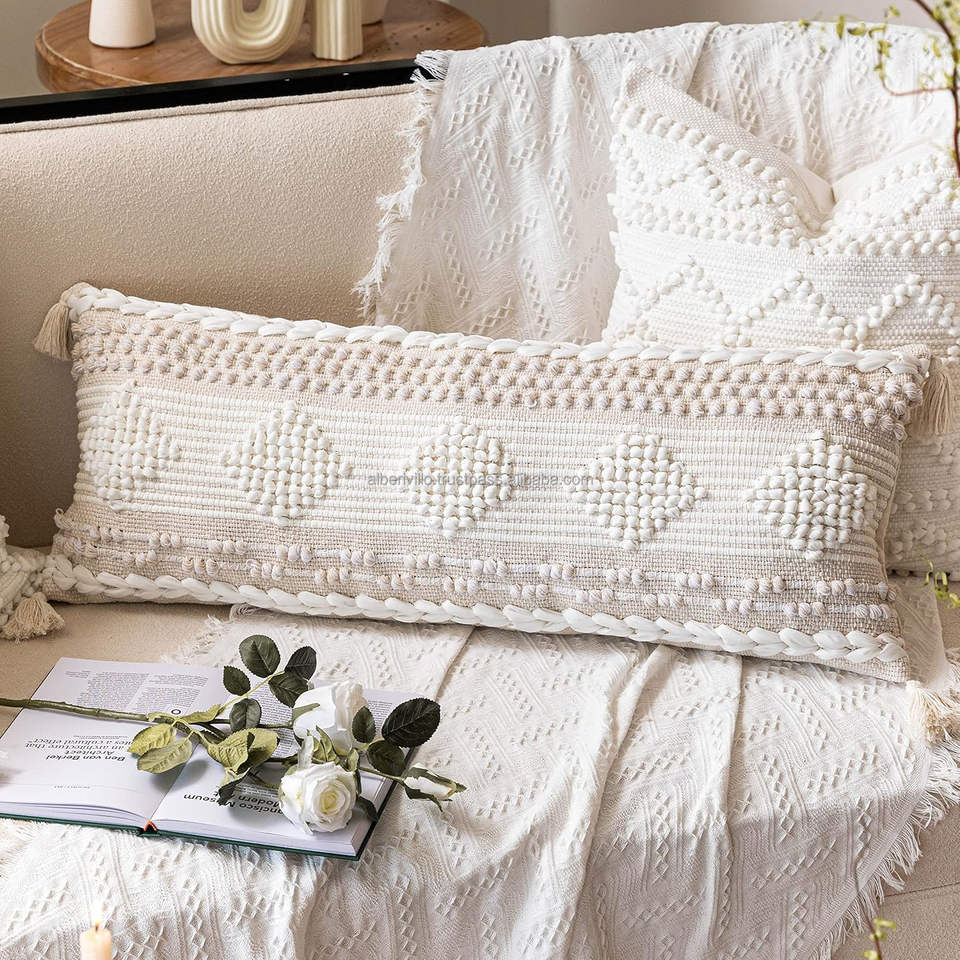 Modern Boho Vintage Geometric Lumbar Cushion Cover Reasonable Price Woven Pillow Cases Decorative Bohemian Trendy Pillow Covers