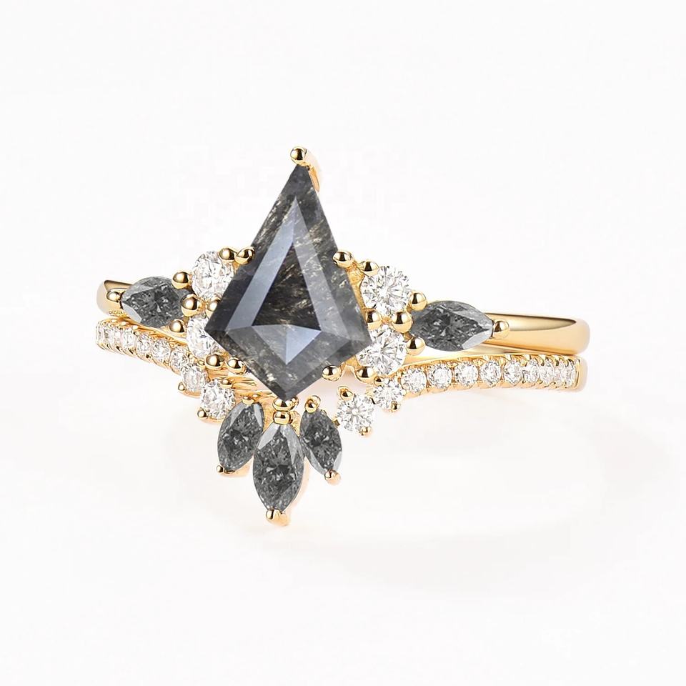 Type de perle:Ensemble de bague en diamants sel et poivre