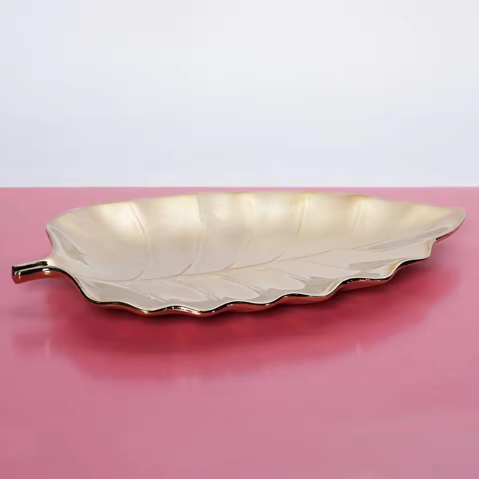 Recent Trend Breakfast Food Leaf Shape Wholesale Customized Color Decorative Tea Coffee Serving Aluminum Tray for Home & Hotels