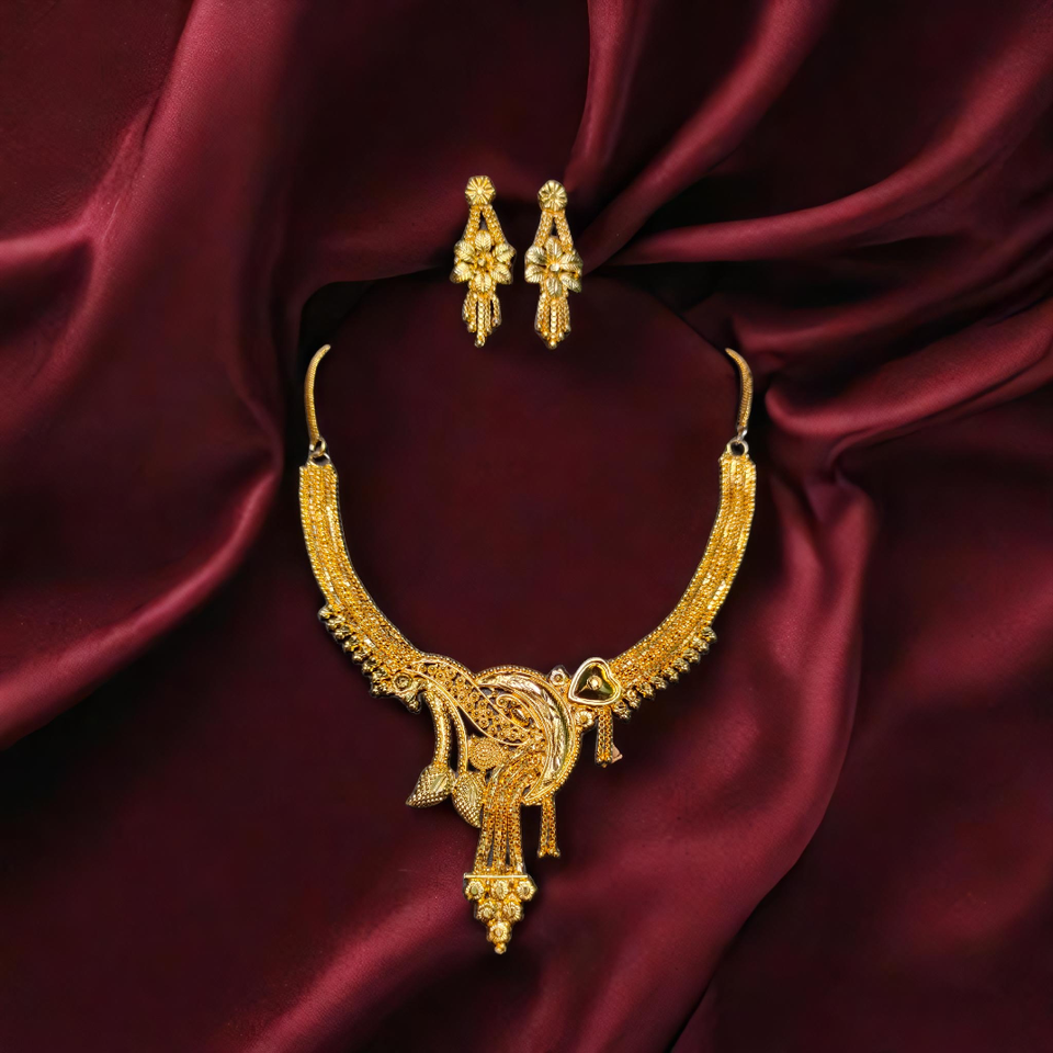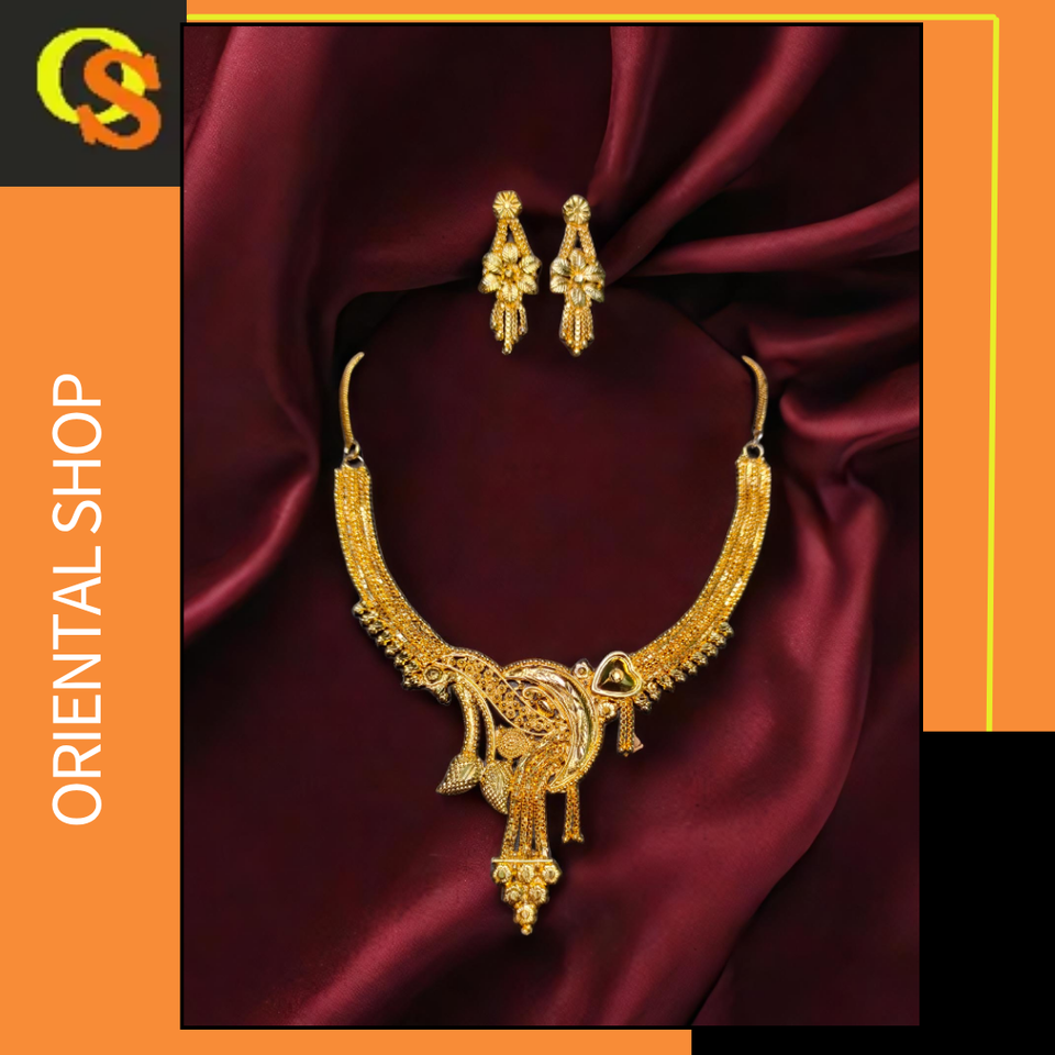 Ensemble de boucles d'oreilles collier de style récent avec plaqué or 22 carats unique conçu pour les femmes porter collier boucles d'oreilles ensemble de bijoux