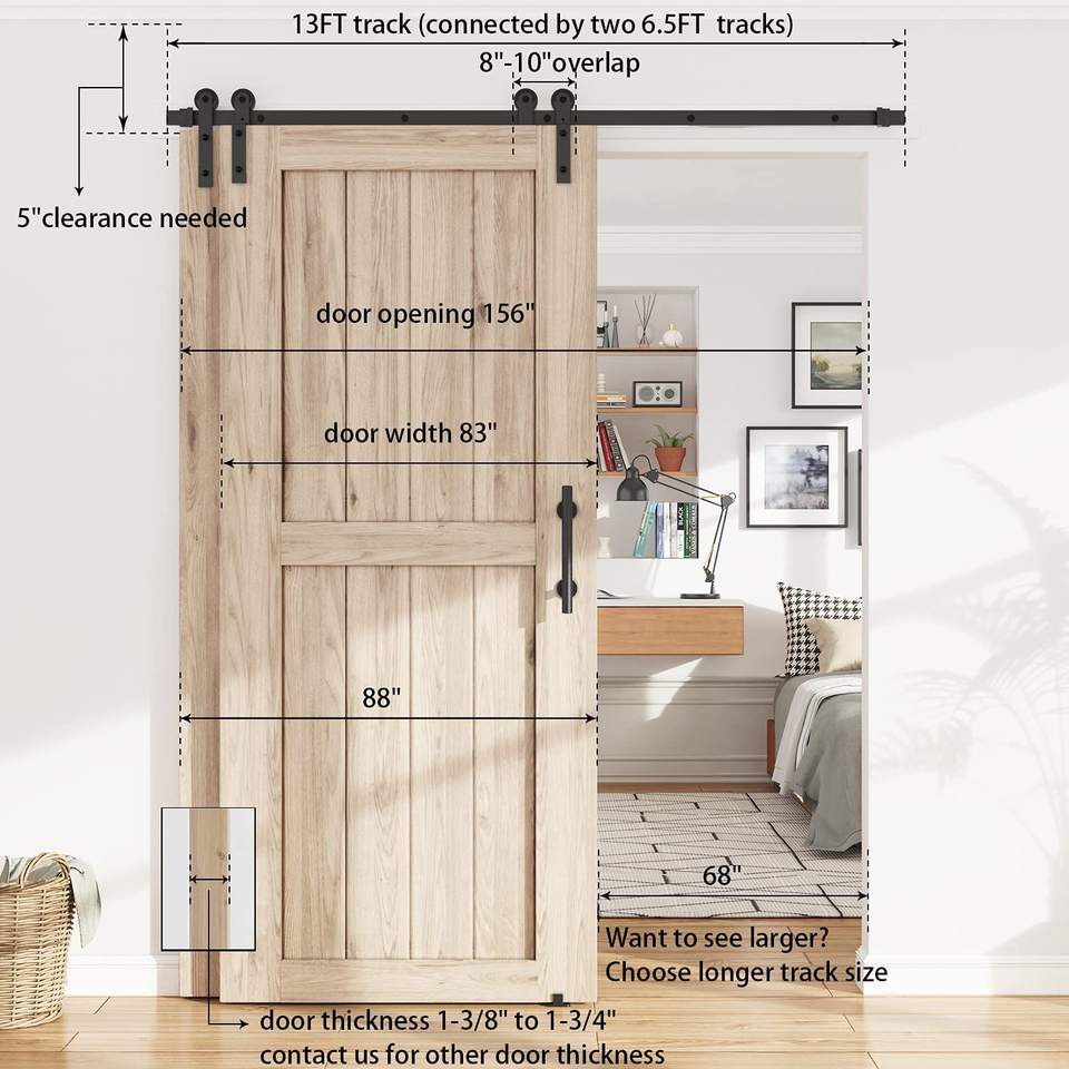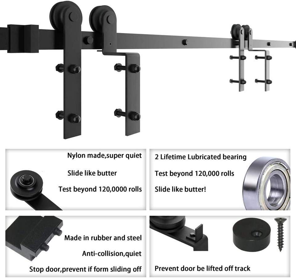 1pc a package of Double Doors Low Ceiling Easy Mount Heavy Duty Slide Quietly and Smoothly Single Track Bypass Sliding Barn Door Hardware Kit