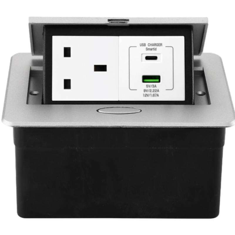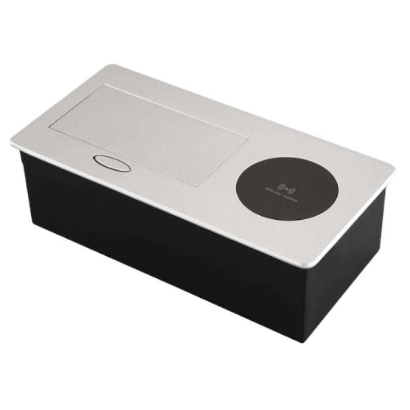Boîte de prise encastrée pour table de conférence avec USB-C 65W et chargeur sans fil 15W, boîte de prise intégrée rétractable