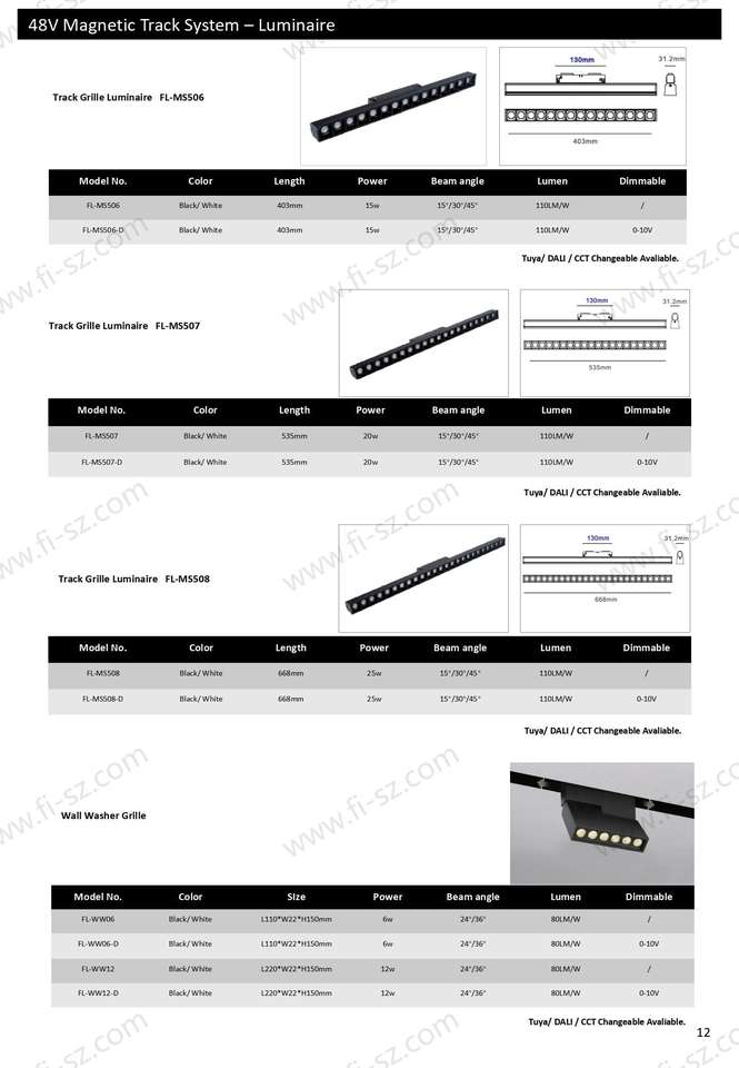 Système d'éclairage magnétique, Rail magnétique 48V