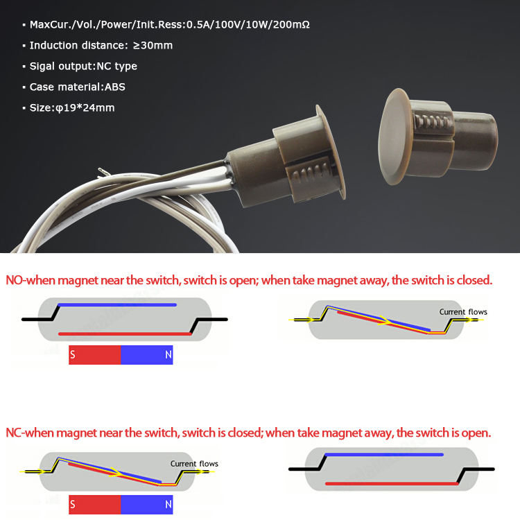 Item:Recessed Mounted 3 Wire NC/NO/COM Door Magnetic Contact Reed Switch
