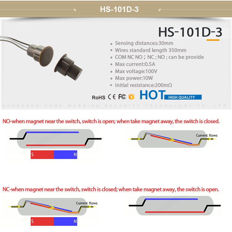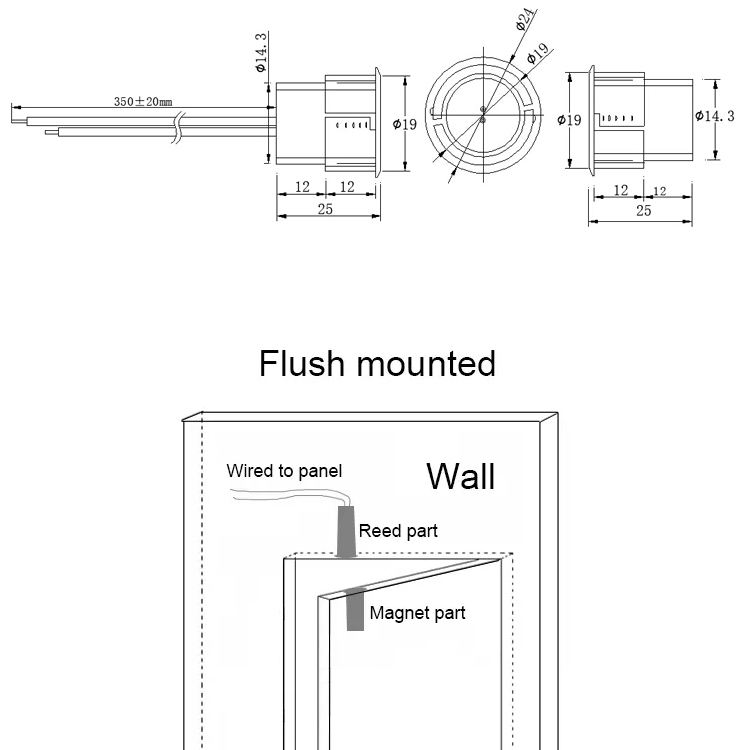 Recessed Mounted 3 Wire NC/NO/COM Door Magnetic Contact Reed Switch