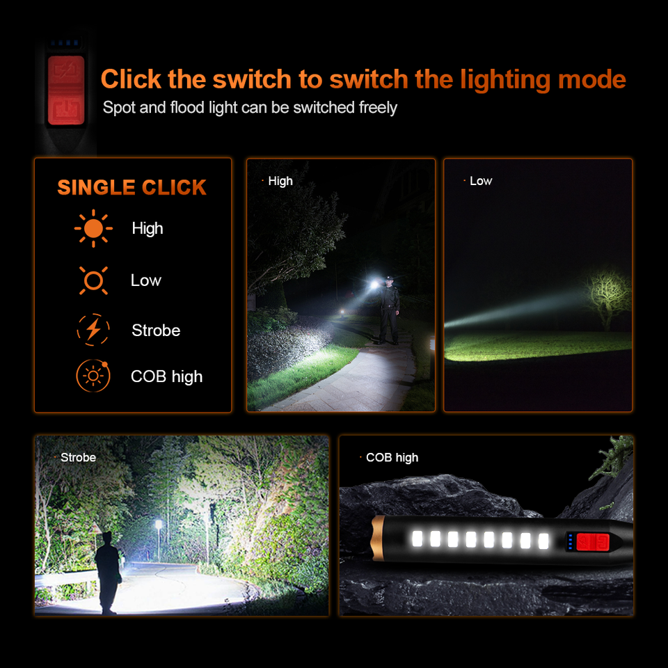 Lampe d'inondation rechargeable COB 2000mAh résistante aux chocs pour la sécurité de la maison Lampes de poche de pêche de nuit pour batte de baseball