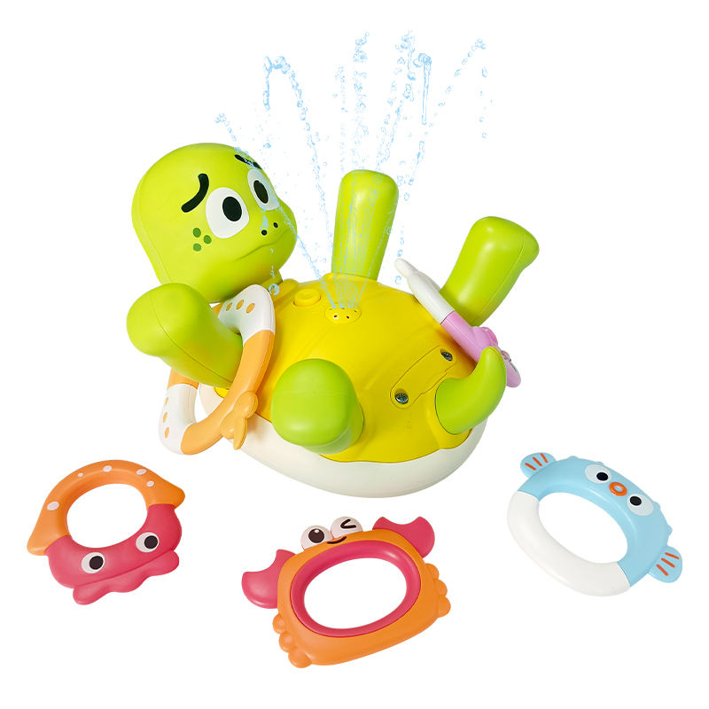 Jouet de pulvérisation d'eau de bain d'été rechargeable pour bébé, tortue arroseuse, jouets de bain pour tout-petits avec 5 anneaux de saut