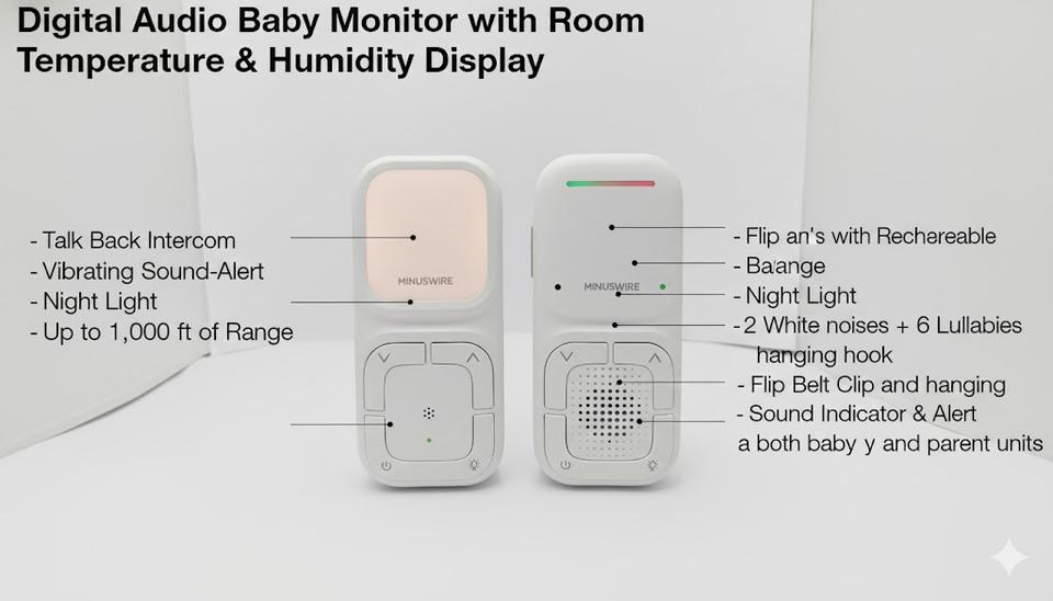 Berceuses, Rappel de l'alimentation, Vision nocturne, PAN-TILT, Audio bidirectionnel, Surveillance de la température, Built-in SirèneUsages spéciaux