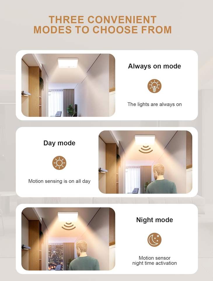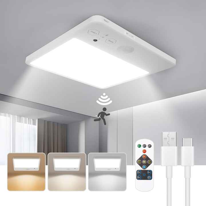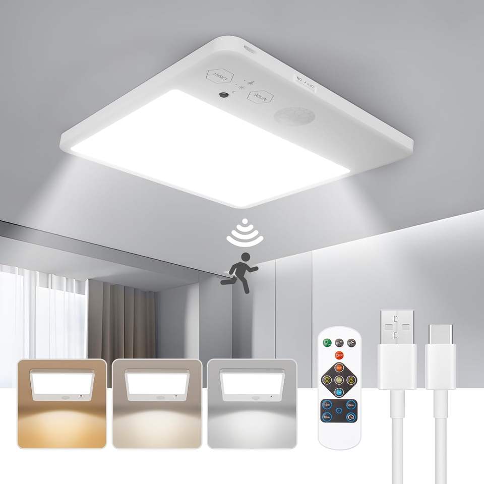 Plafonnier rechargeable avec télécommande, sans fil, détecteur de mouvement, lampe de plafond à piles